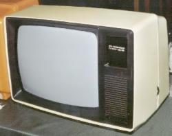 Monitor mit grüner Kathodenstrahlröhre | < Hier links auch einer der ersten Monitore für die Bildgebung der KC - Computer. Der Bildschirm zeigte grünfarbebene Darstellungen von Schrift und Zahlen. Solche Monitore fanden hauptsächliche Benutzung für die Datenverarbeitung im Büro. |
